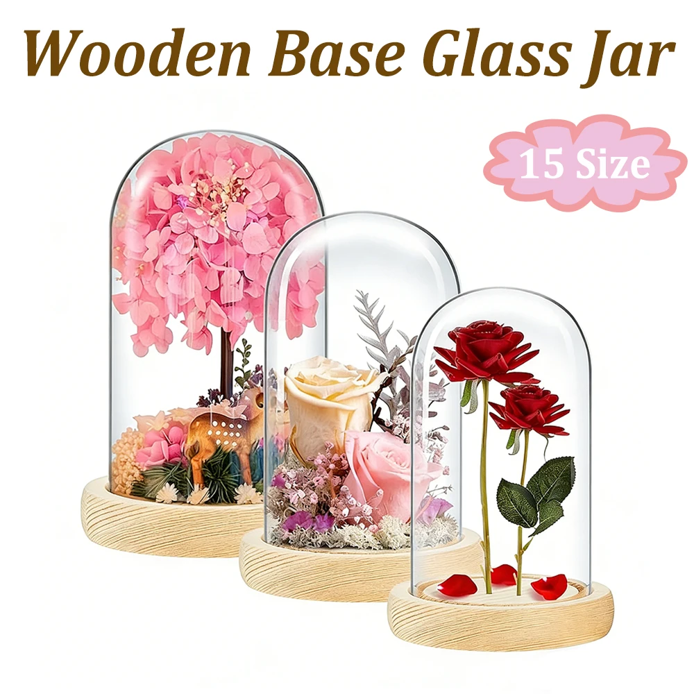 Cloche à dôme en verre, pot de cloche, Base en bois pour décorations de fê...