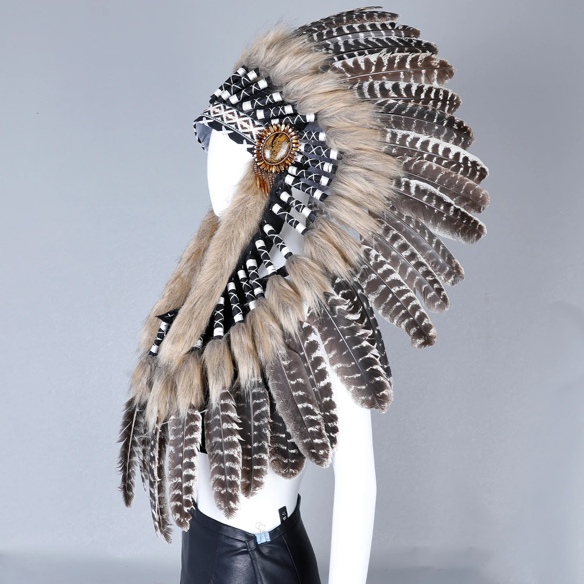 Chapeau indien de chef, coiffe en plumes artificielles pour carnaval, jeu de rôle sur sc&egrav...