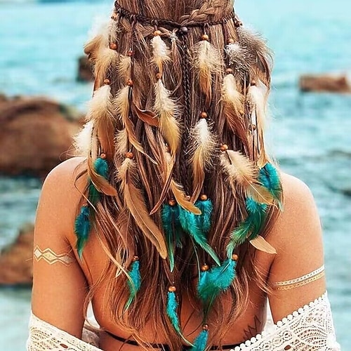 Serre-tête Hippie à Plumes, Coiffe Bohème, Cour...