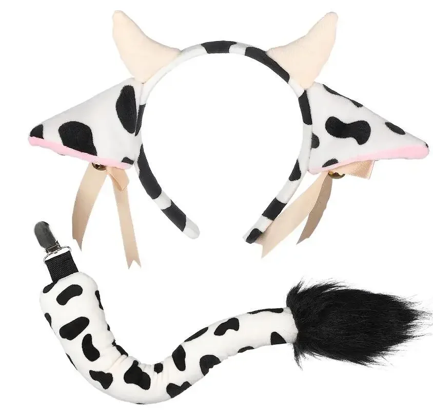 1 ensemble de Costume de Cosplay de fête d'animaux, oreilles de vache en peluche, bandeau en c...