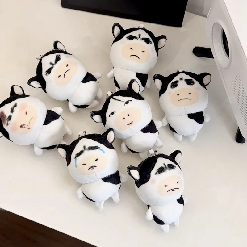 Peluche de vache amusante et douce, adorable breloque de sac avec visage de vache en meme, cadeau, v...