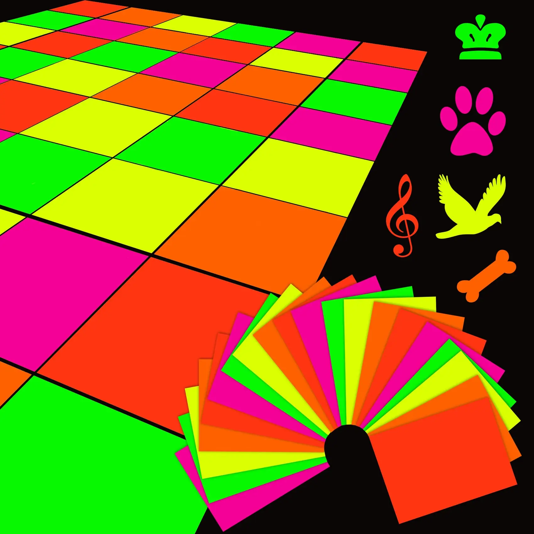 Papier cartonné néon phosphorescent, lumière noire UV, structurels ent ré...