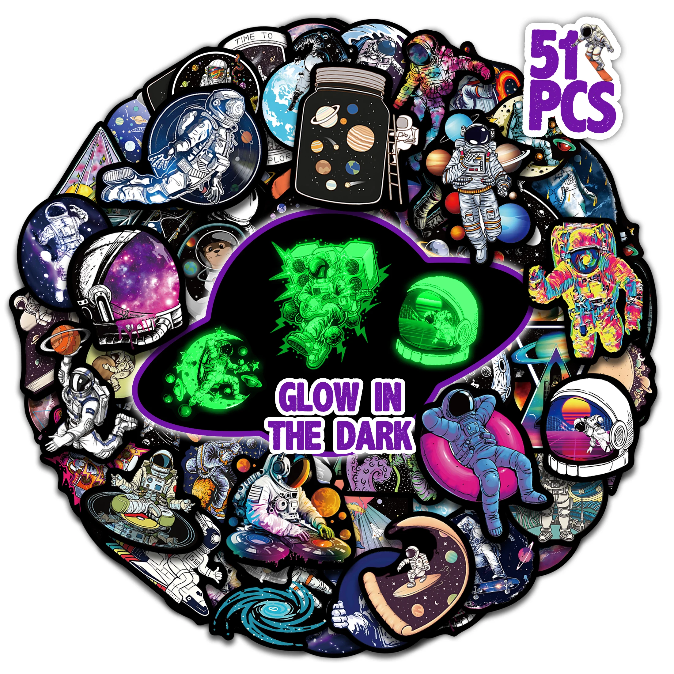 Autocollants d'astronome de l'espace extra-atmosphérique phosphorescent, dessin animé ...
