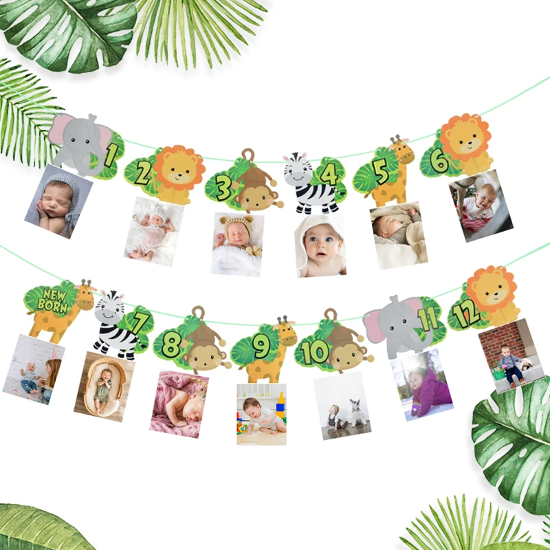 Jungle Safari Birthday Photo Banner, Newborn Photo réinitialisation Garland, Kids Interface O...