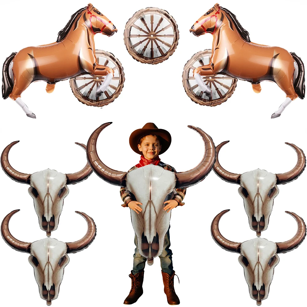 Décoration de fête de Cowboy occidental, ballon en aluminium Longhorn, tête de ch...