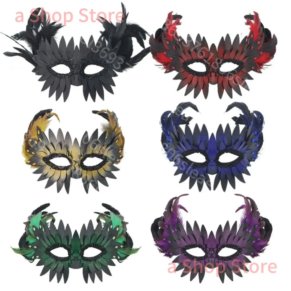 Noir Corbeau Oiseau Bouche Plume Masque Cosplay Animal Corbeau Demi...