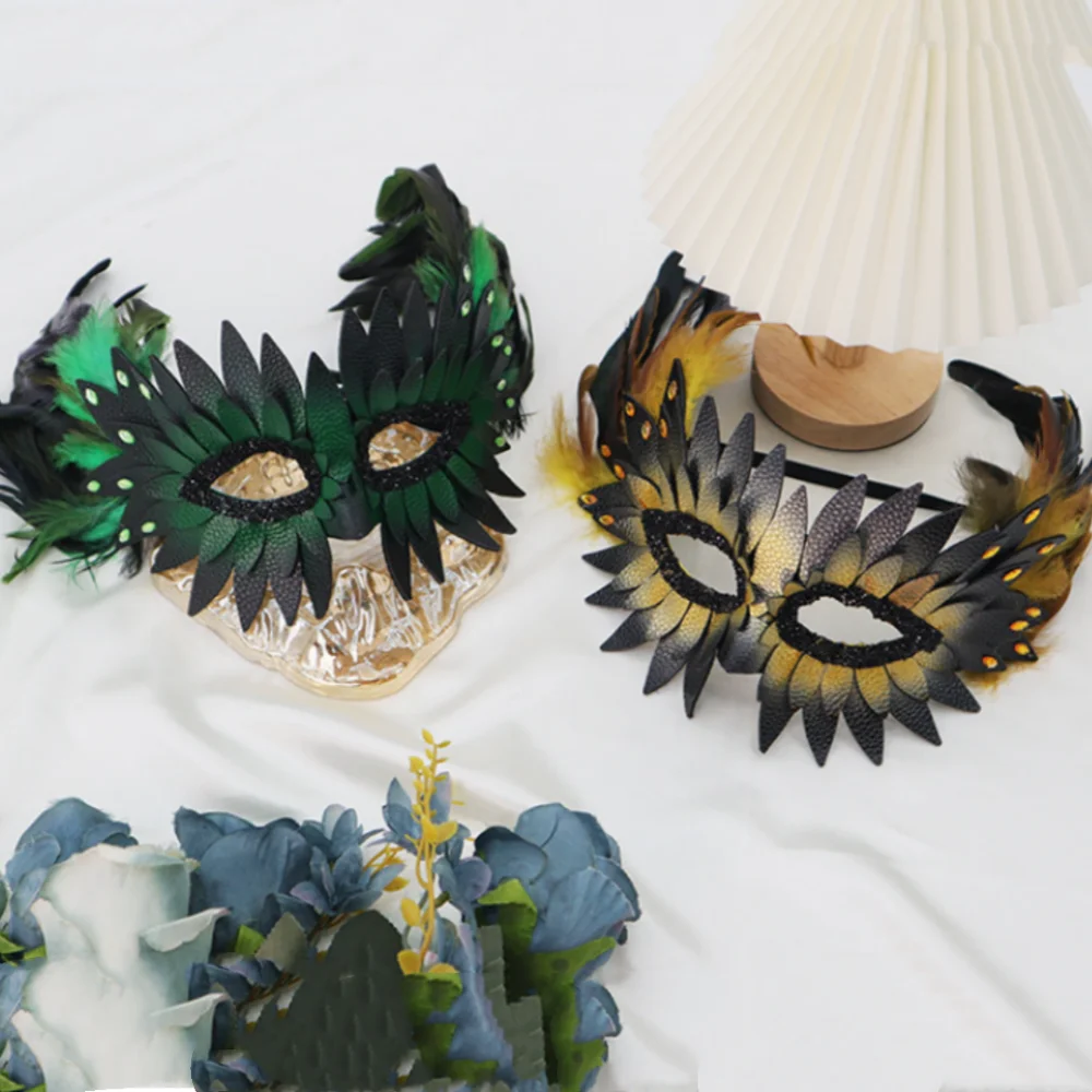 Nouveau masque à bec d'oiseau en cuir PU noir exquis masque de plume de hibou demi-visage mas...
