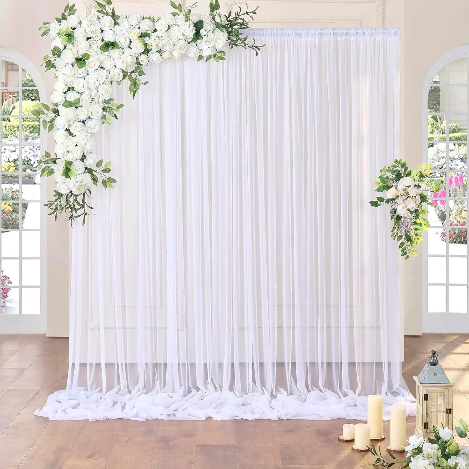 Rideau d'arrière-plan en mousseline de soie blanche, pour fête de mariage, décor...