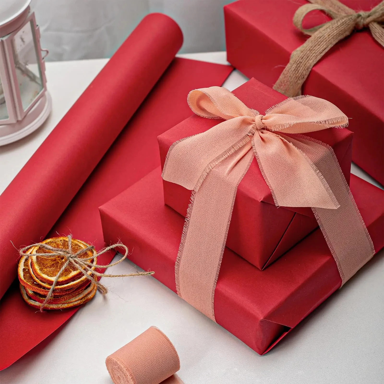 Papier kraft rouge idéal pour l'emballage de cadeaux, rouleau d'emballage pour l'art mobile, ...