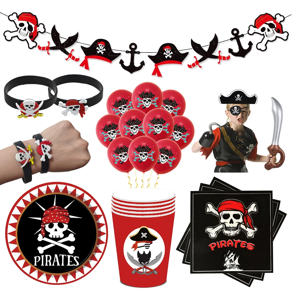 Serviettes de fête Pirate, assiettes, tasses, nappes, banni&e...