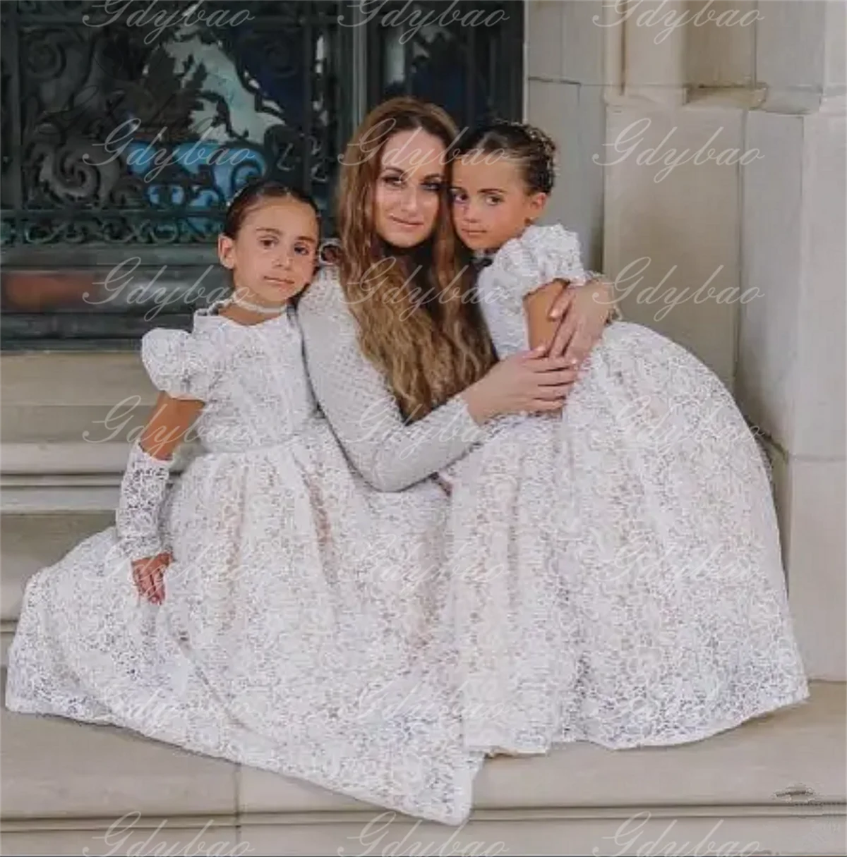 Fleurs dentelle adorables robes de fille de fleur pour mariage gonflé ballon manches fê...