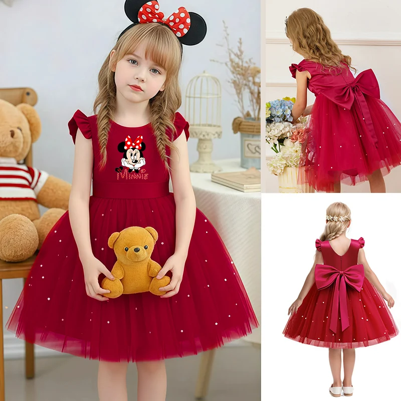 Filles perles robe cadeau Minnie Mouse élégant princesse robe de mariée enfant ...
