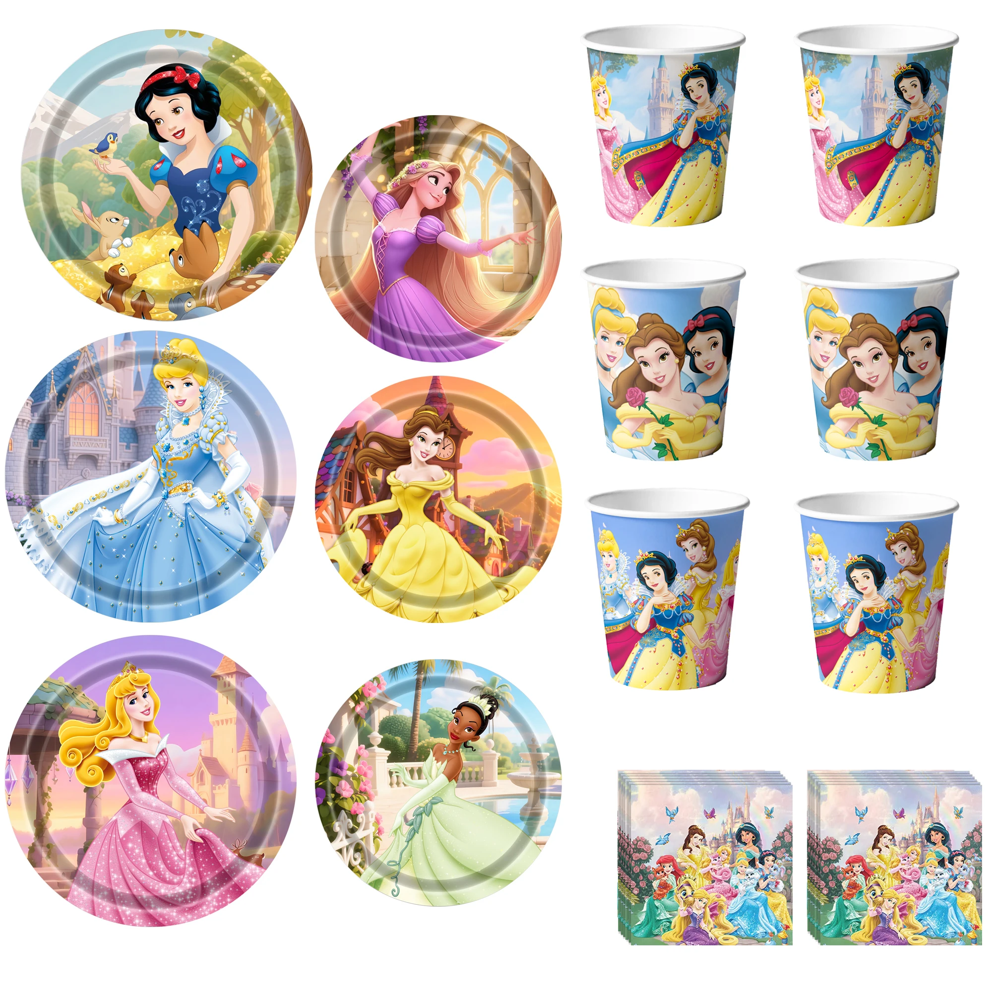 Vaisselle d'anniversaire princesse Disney, 120 pièces, assiettes, serviettes, tasses, etc., f...