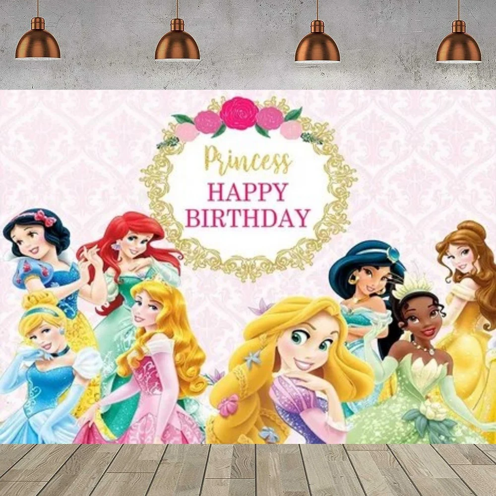 Toile de fond de photographie avec affiche de princesse Disney pour filles, décoration de f&e...