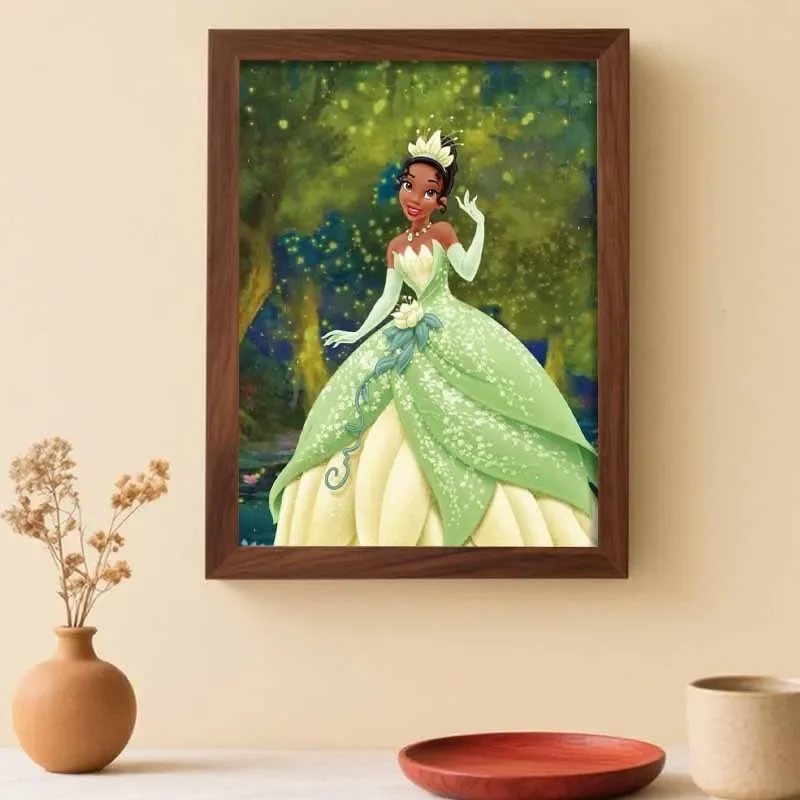Kit de peinture diamant 5D princesse Tiana DISNEY, avec robe de lys vert et forêt scintillante...