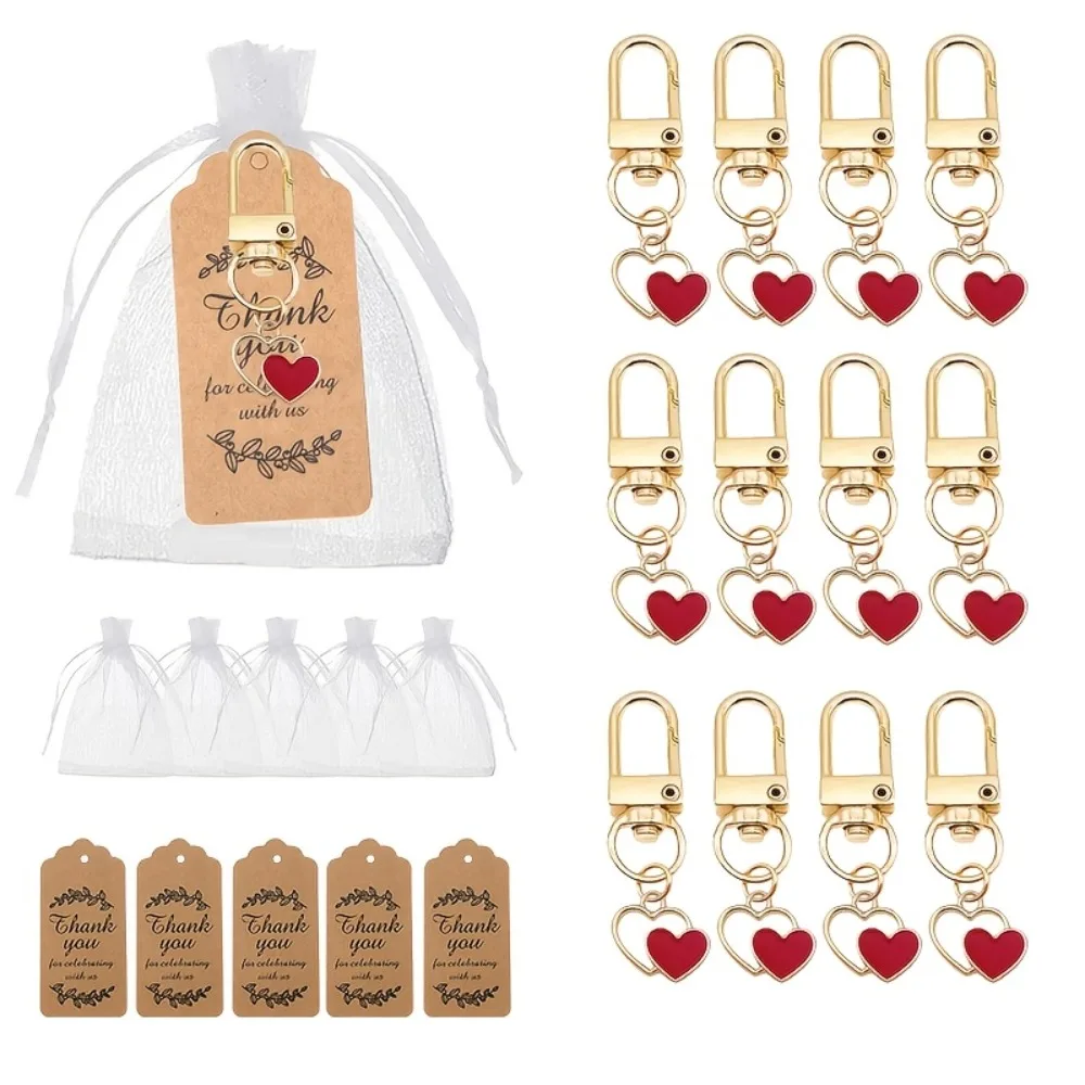 Ensemble de porte-clés romantiques en forme de cœur rouge, avec cartes et sacs en organ...