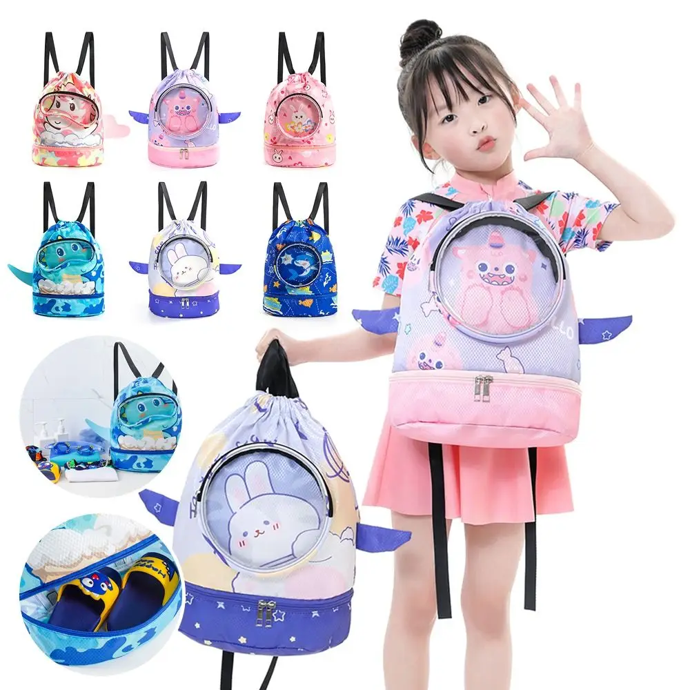 Sac de plage à cordon de serrage pour enfants, séparation sèche et humide, &eac...