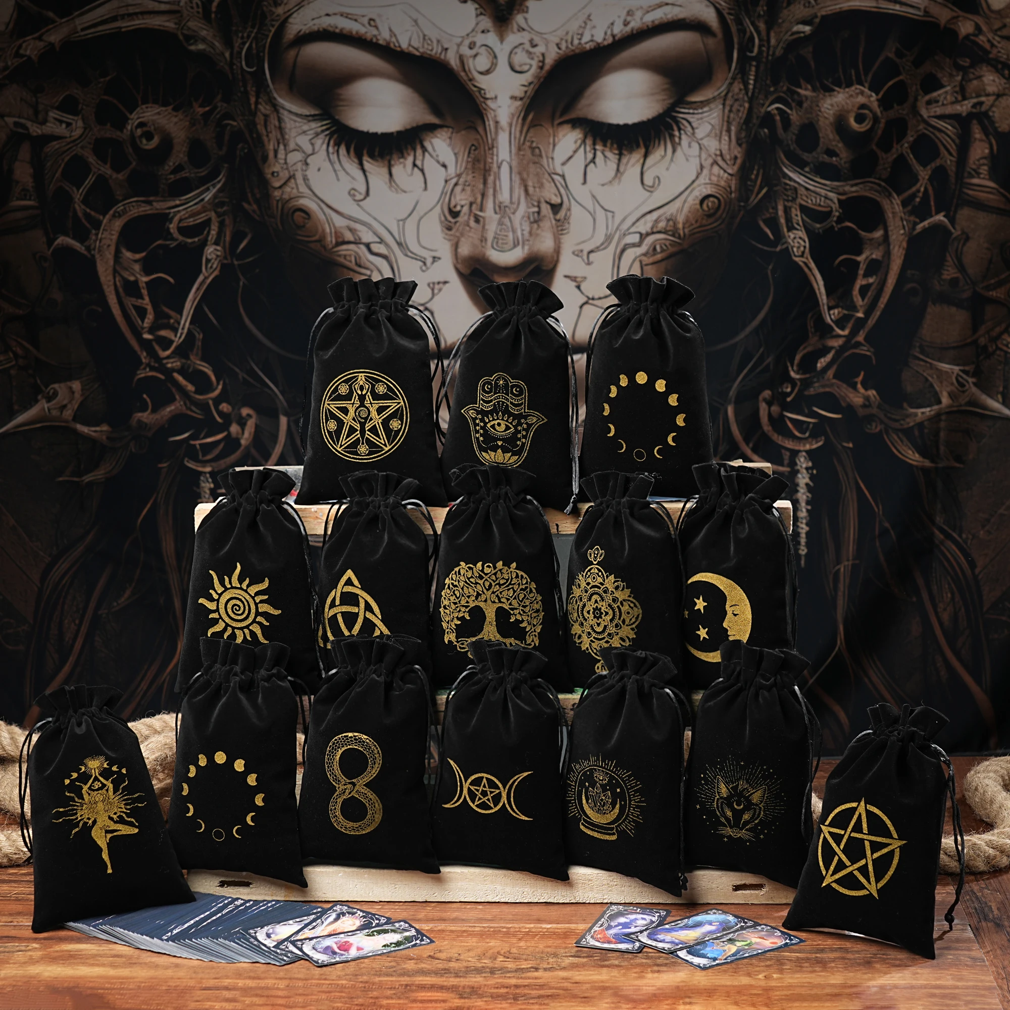 15/1 pièces 14x22cm noir velours Phase de lune Tarots cartes sac de rangement pochette &agrav...