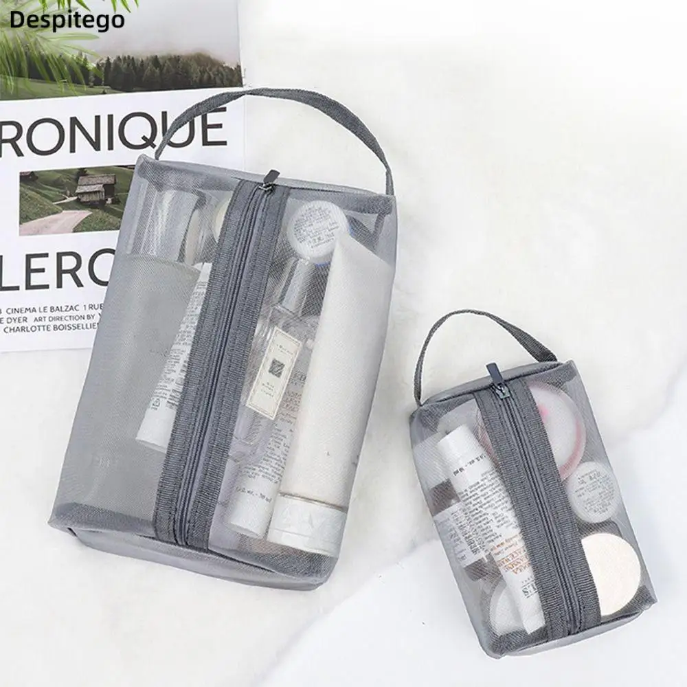 Sac à cosmétiques transparent en maille, sac de range...