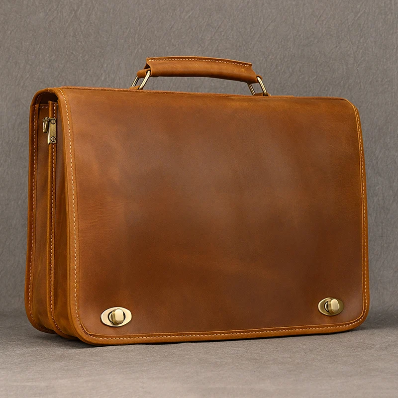 Sac pour ordinateur portable en cuir véritable personnalisé pour hommes, étui &...