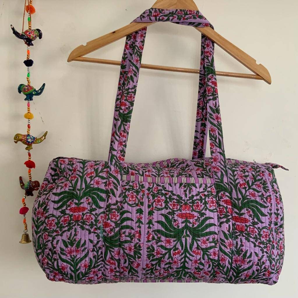 "Ce sac de sport fait main à imprimé bloc, sac kantha 100 % coton. Poche carr&eac...