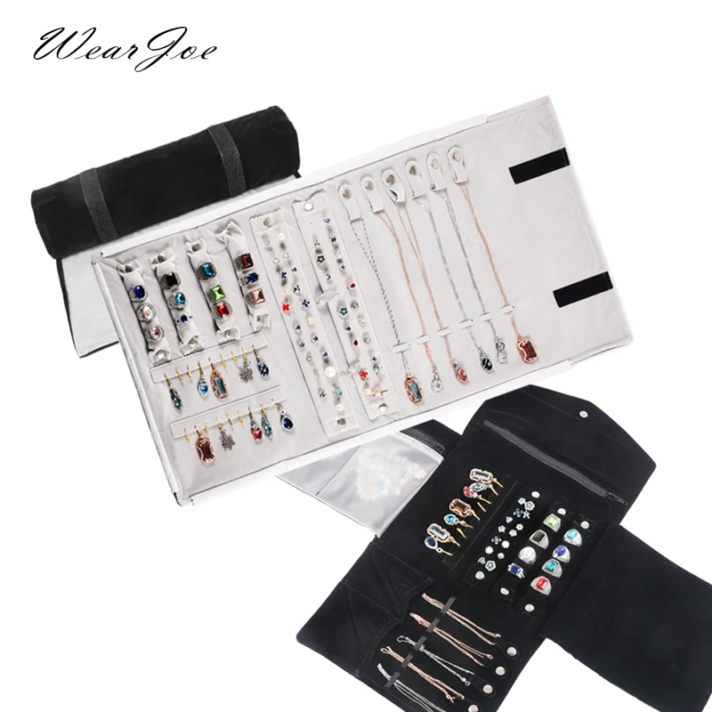 Gros noir velours bijoux affichage rouleaux voyage organisateur sac pliable boucles d'oreilles annea...