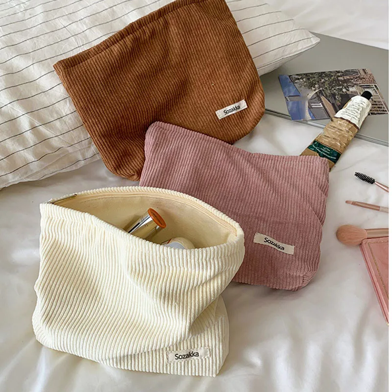 Nouveau sac de maquillage minimaliste en velours côtelé main dans la main, sac de range...