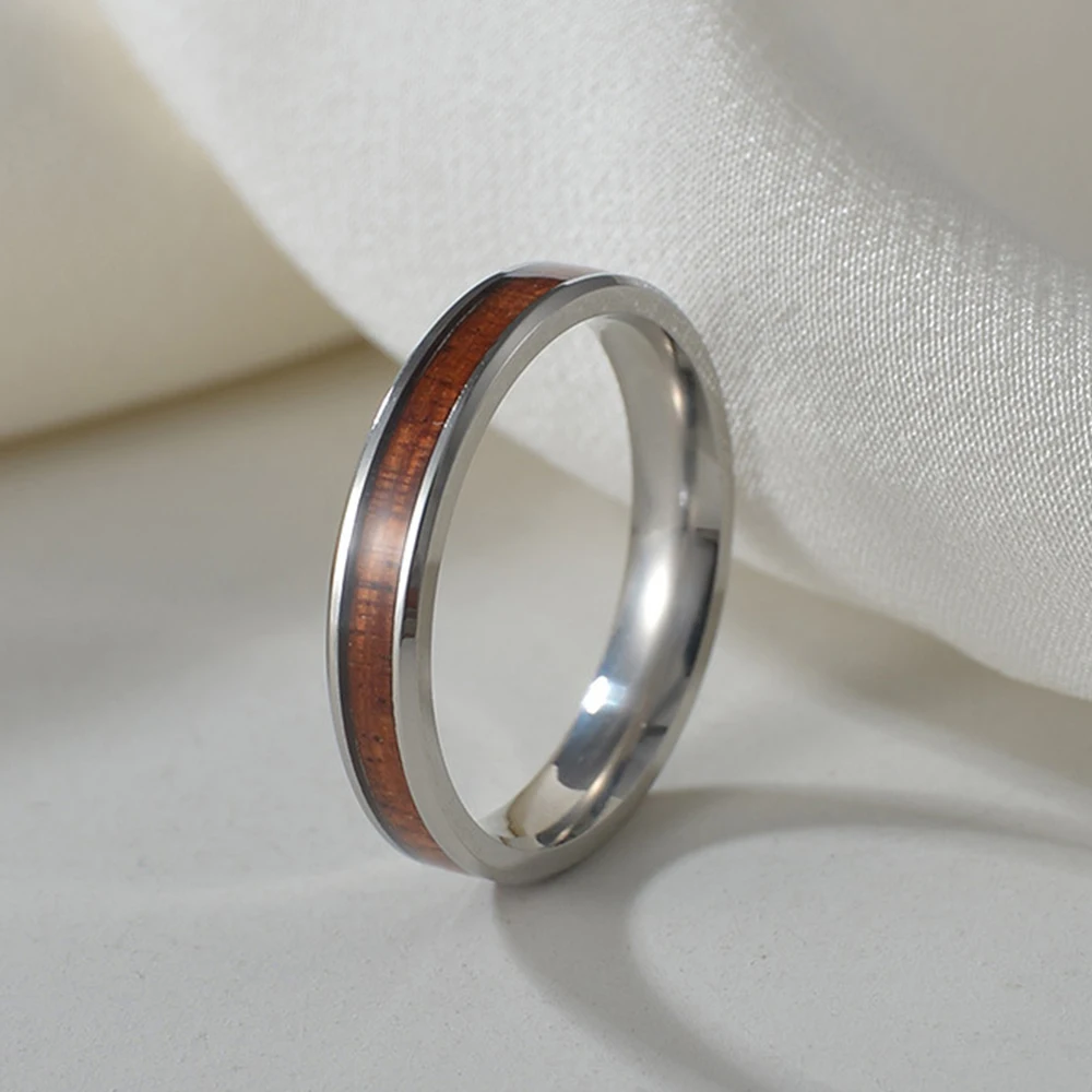 Bague en acier inoxydable incrustée de bois massif pour homm...