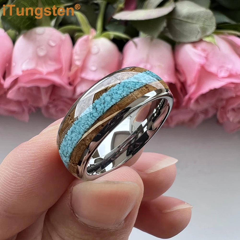 ITungsten 8mm hommes femmes tungstène fiançailles alliance bague Turquoise whisky bois...