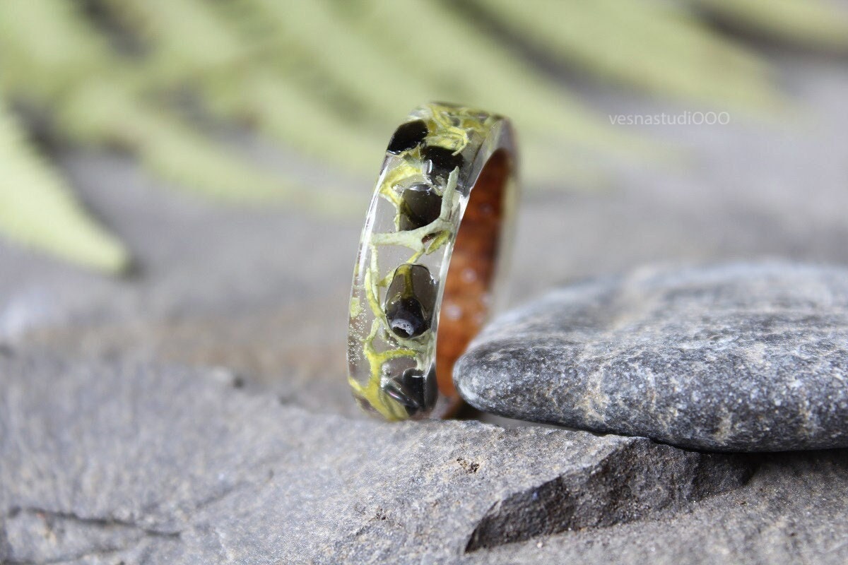 Anneau de tourmaline noire Anneau de résine de pierre de mou...