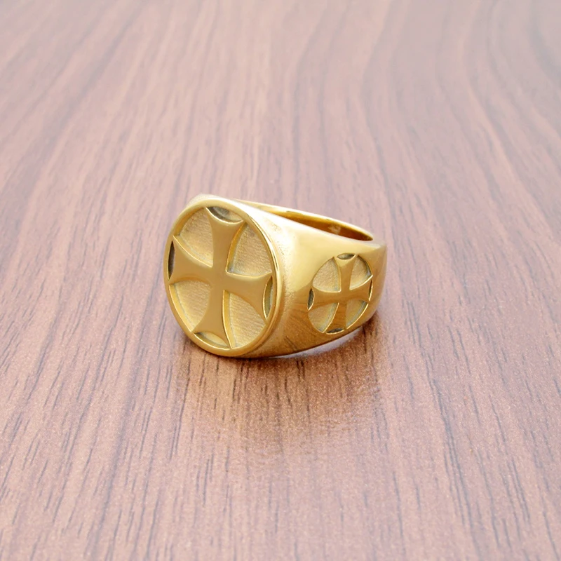 Bague chevalier double croix pour cadeau, acier inoxydable, fer plaqué or, punk SION L