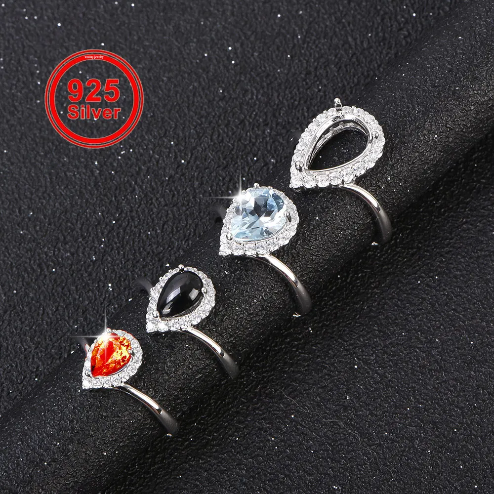 Bague à tige solide en forme de larme en argent sterling S925, réglage 4x6mm-8x12mm, r...