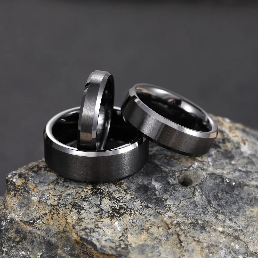 Bagues en titane pour hommes 8mm, bijoux noirs Cool, mariage, fian&...