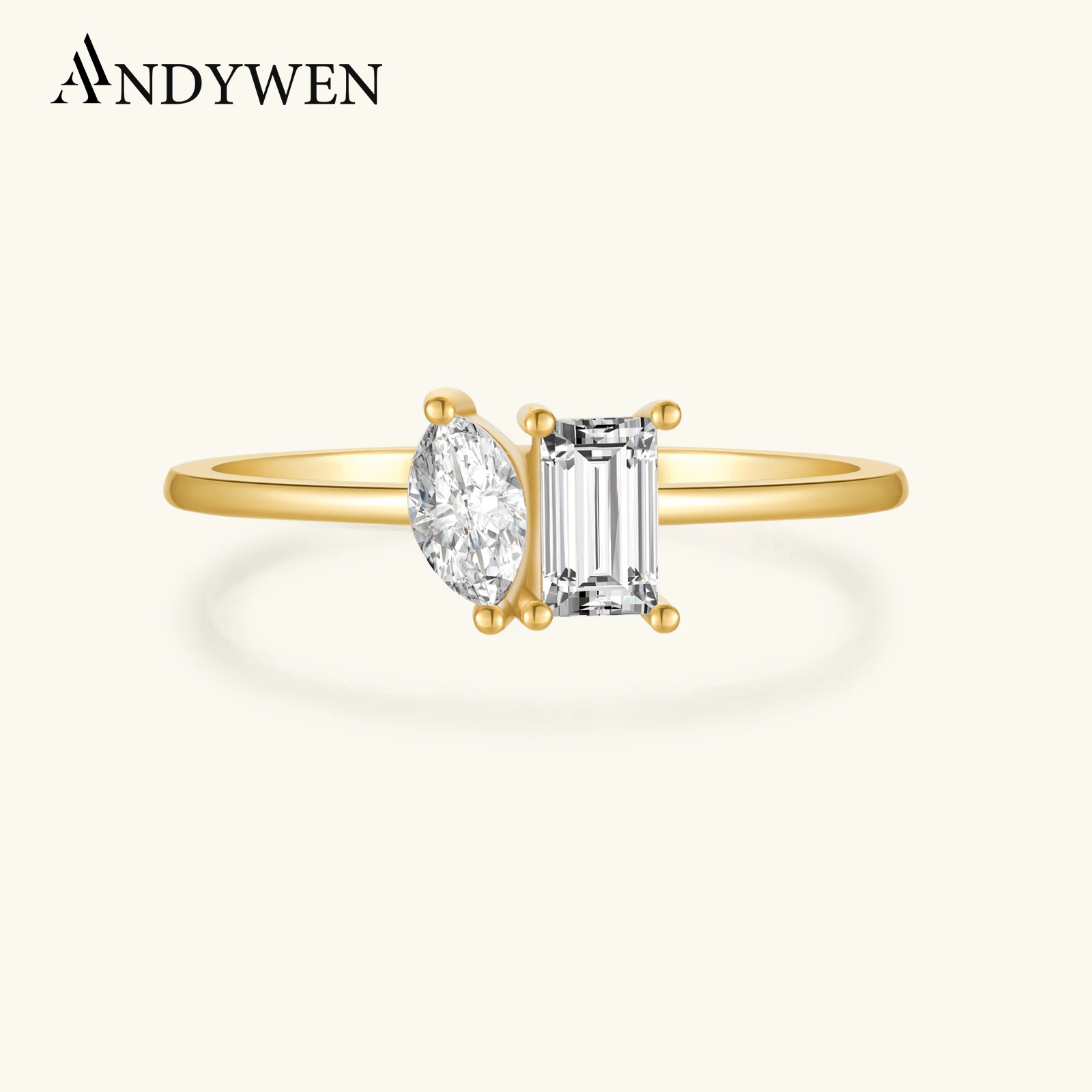 ANDYWEN-Bague carrée en argent regardé 925 pour femme, Marqulse Zfolds, Simple, Defini...