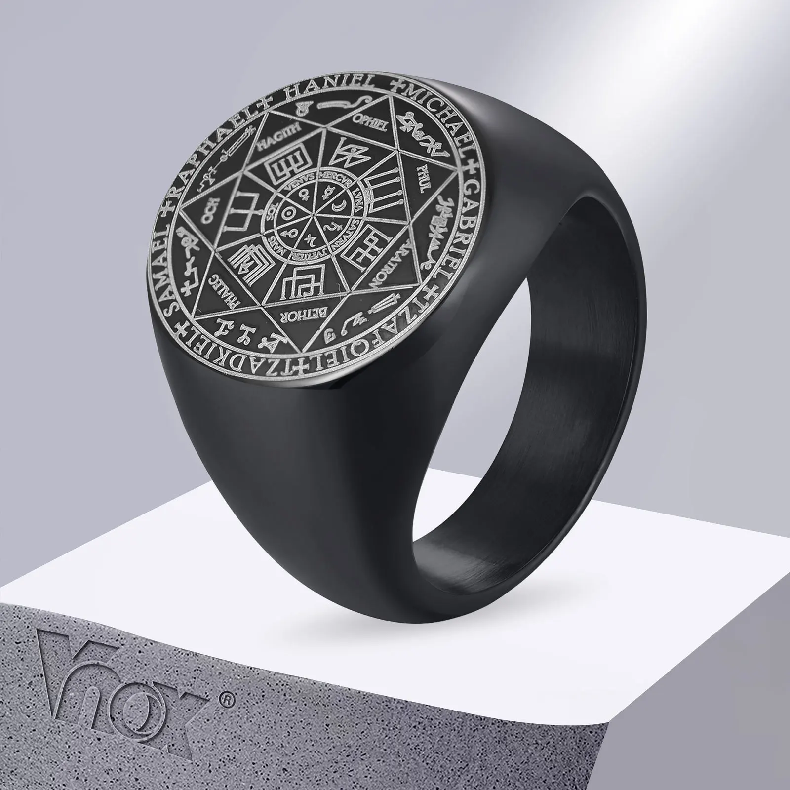 Vnox – bagues sept sceaux d'anges pour hommes, bande de doigt ronde avec tampon supérie...