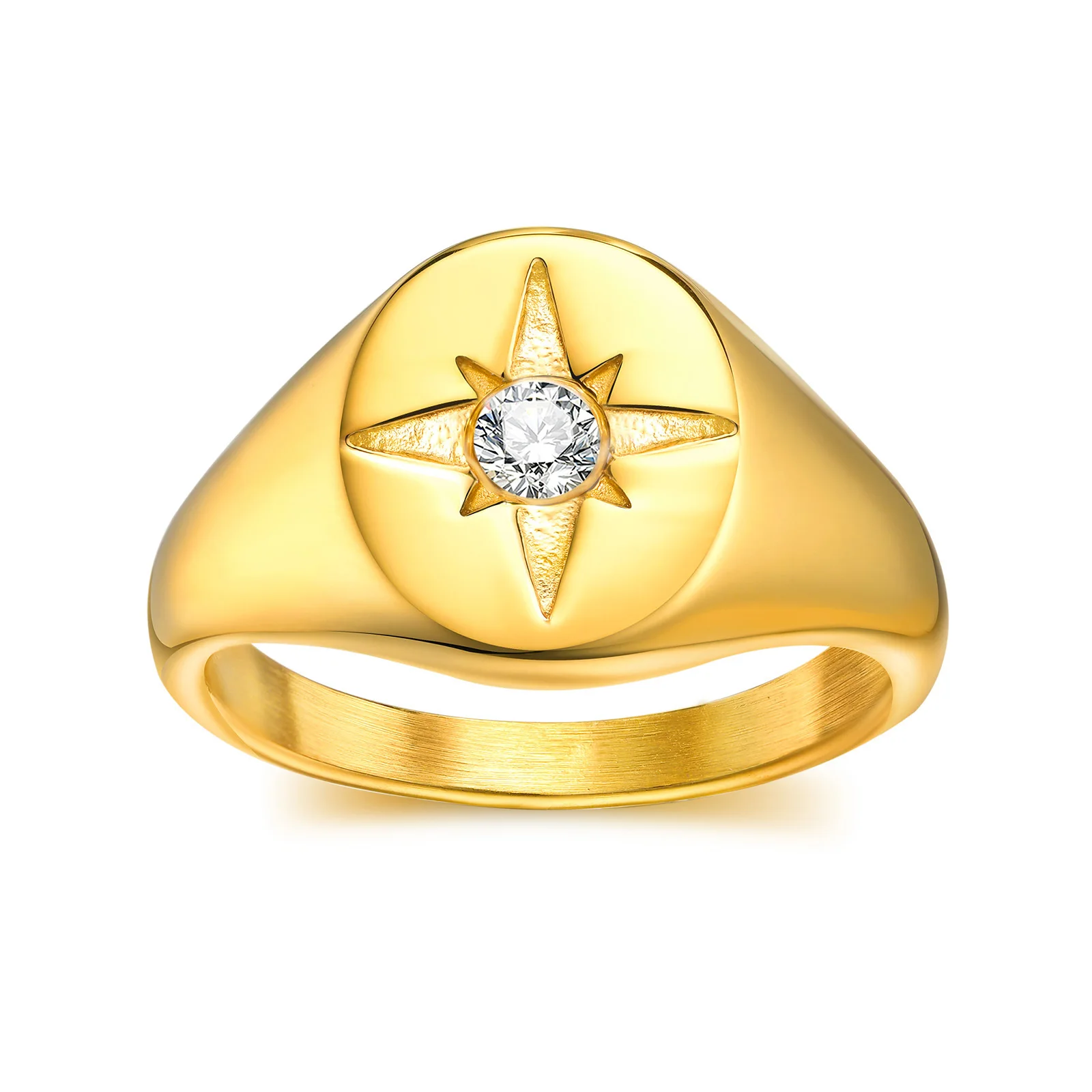 Bagues chevalière étoile pour femmes, bande de doigt ronde en acier inoxydable massif ...