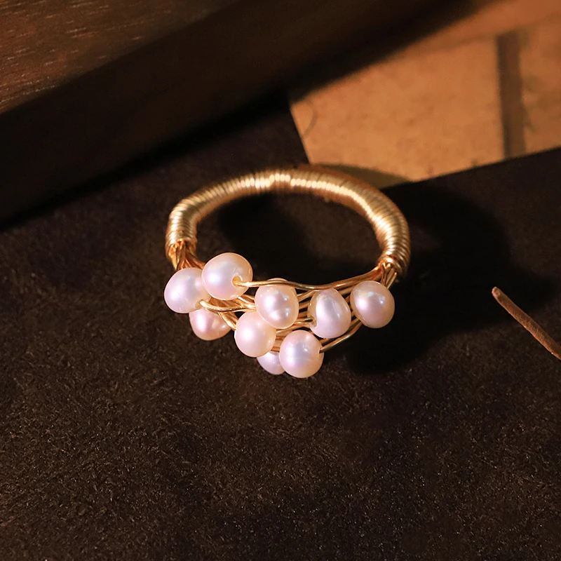 Bague enveloppée de fil de perles d'eau douce naturelles multi-tailles, bague faite à ...