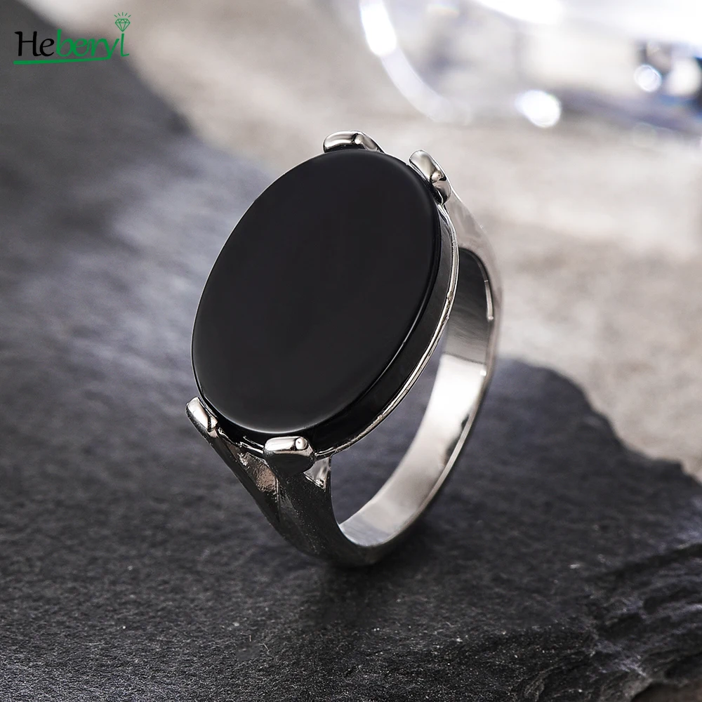 Bagues en argent Sterling 925 avec Agate noire naturelle, 13x18MM, pierres ovales de grande taille, ...