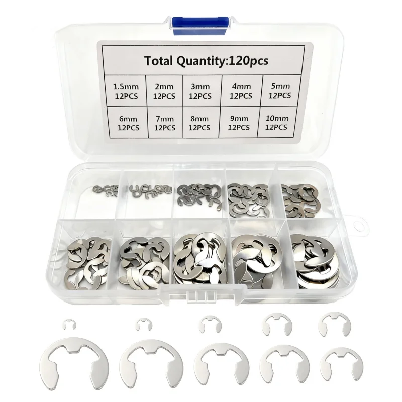 Kit d'assortiment de 120/200 pièces d'anneaux de retenue externes en acier inoxydable 304, ty...