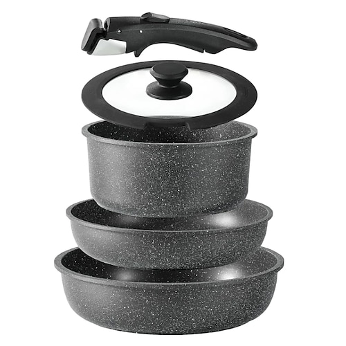 Poêle antiadhésive avec poignée amovible, ensem...