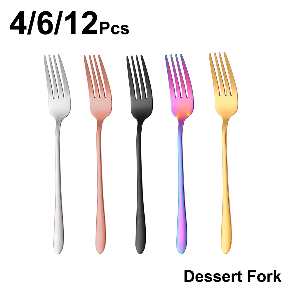 Fourchette à Dessert noire en acier inoxydable, ensemble de ...