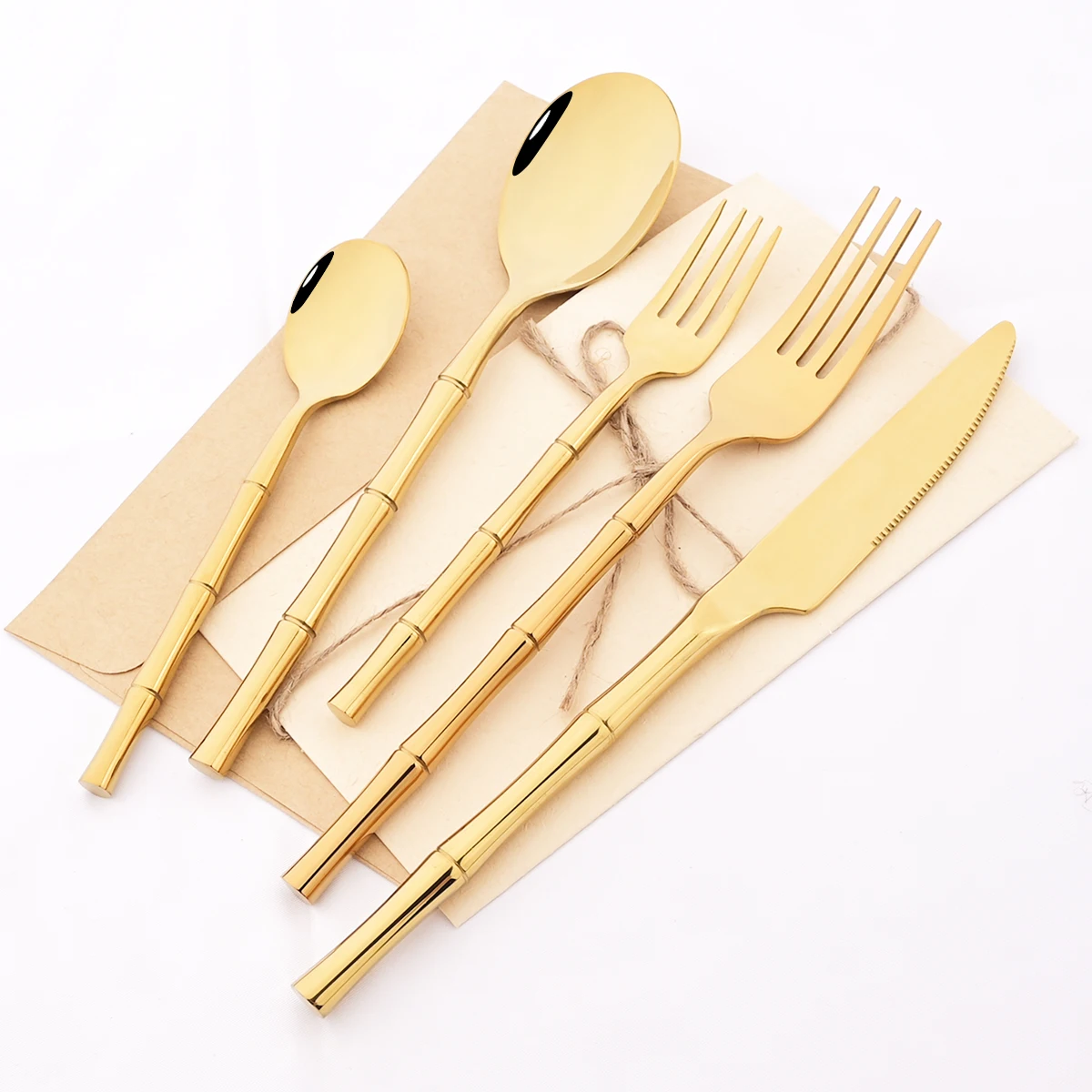 Ensemble de couverts en acier inoxydable doré, 4/5 piè...