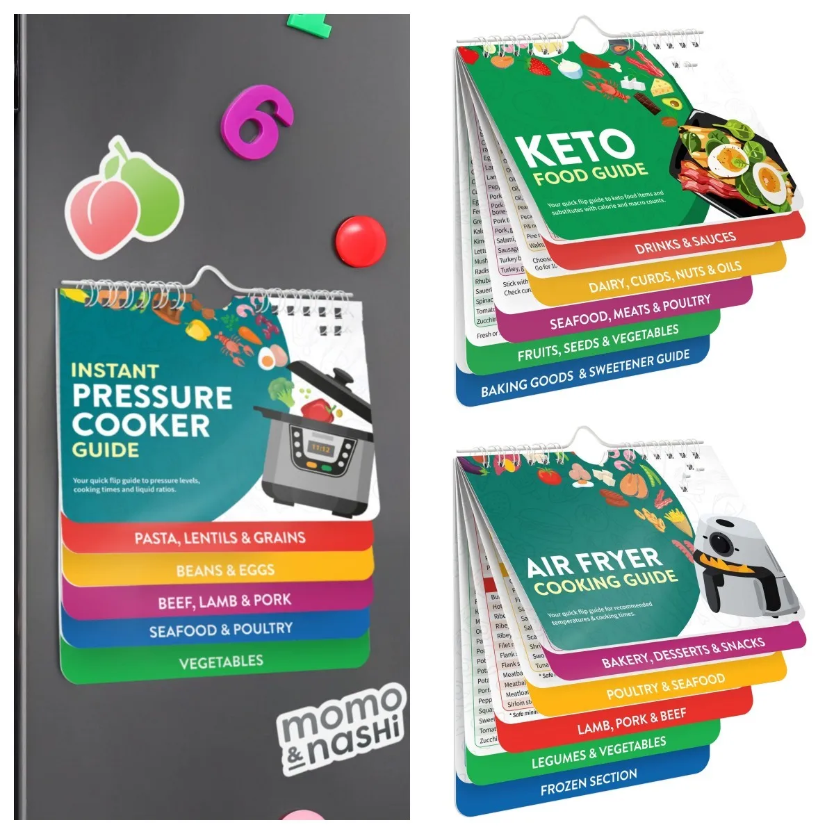 Livre de recettes pour friteuse à air, feuille de triche magnétique, livret de guidage...