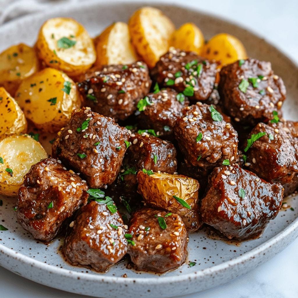 Bouchées de boeuf et pommes de terre au beurre à l'ai...