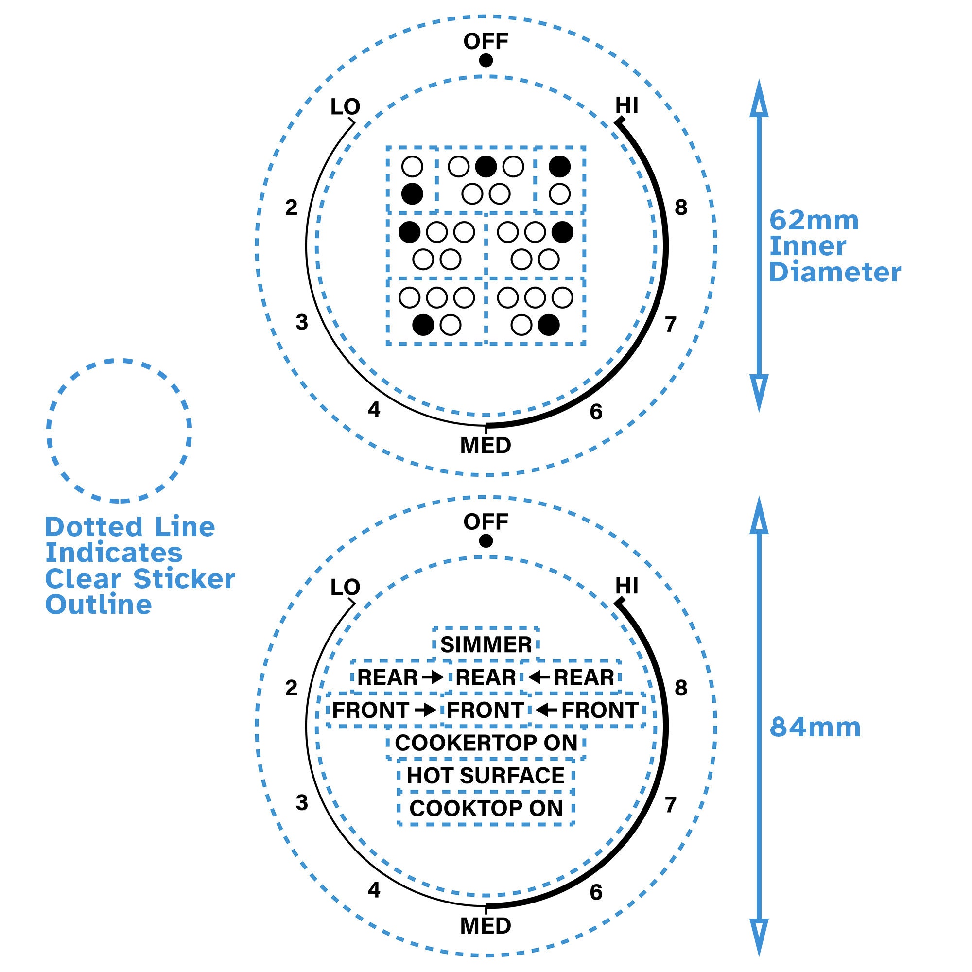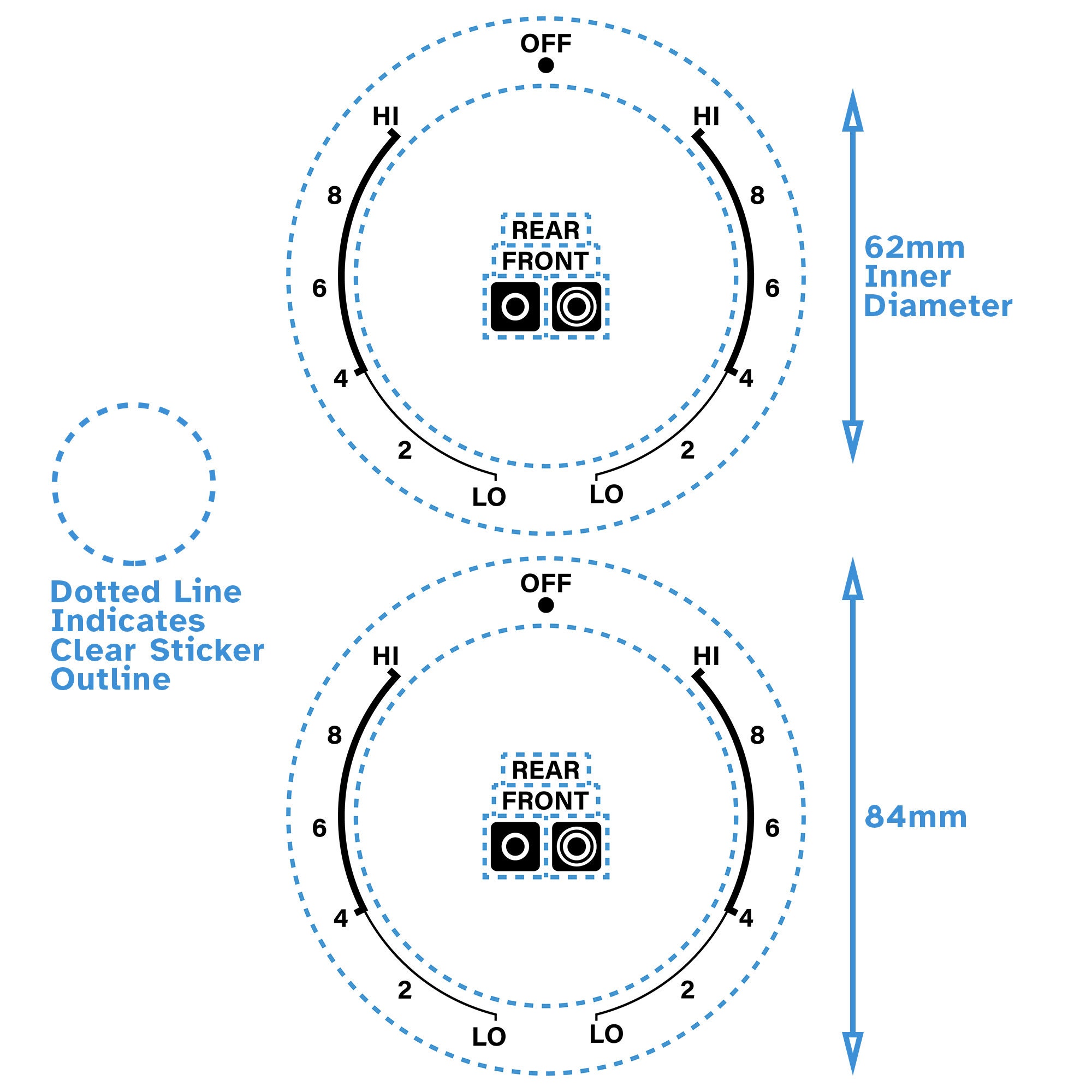 "2 grandes étiquettes Lo-Med-Hi AC/CCW 62 mm 2,5\"...