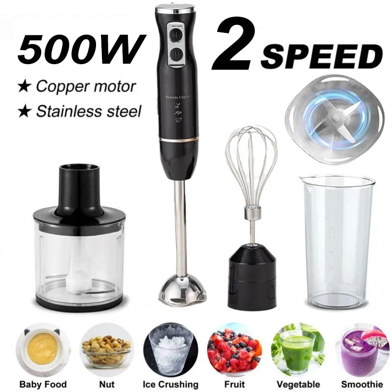 Mixeur Plongeant Électrique 4-en-1 Haute Puissance 500W avec...