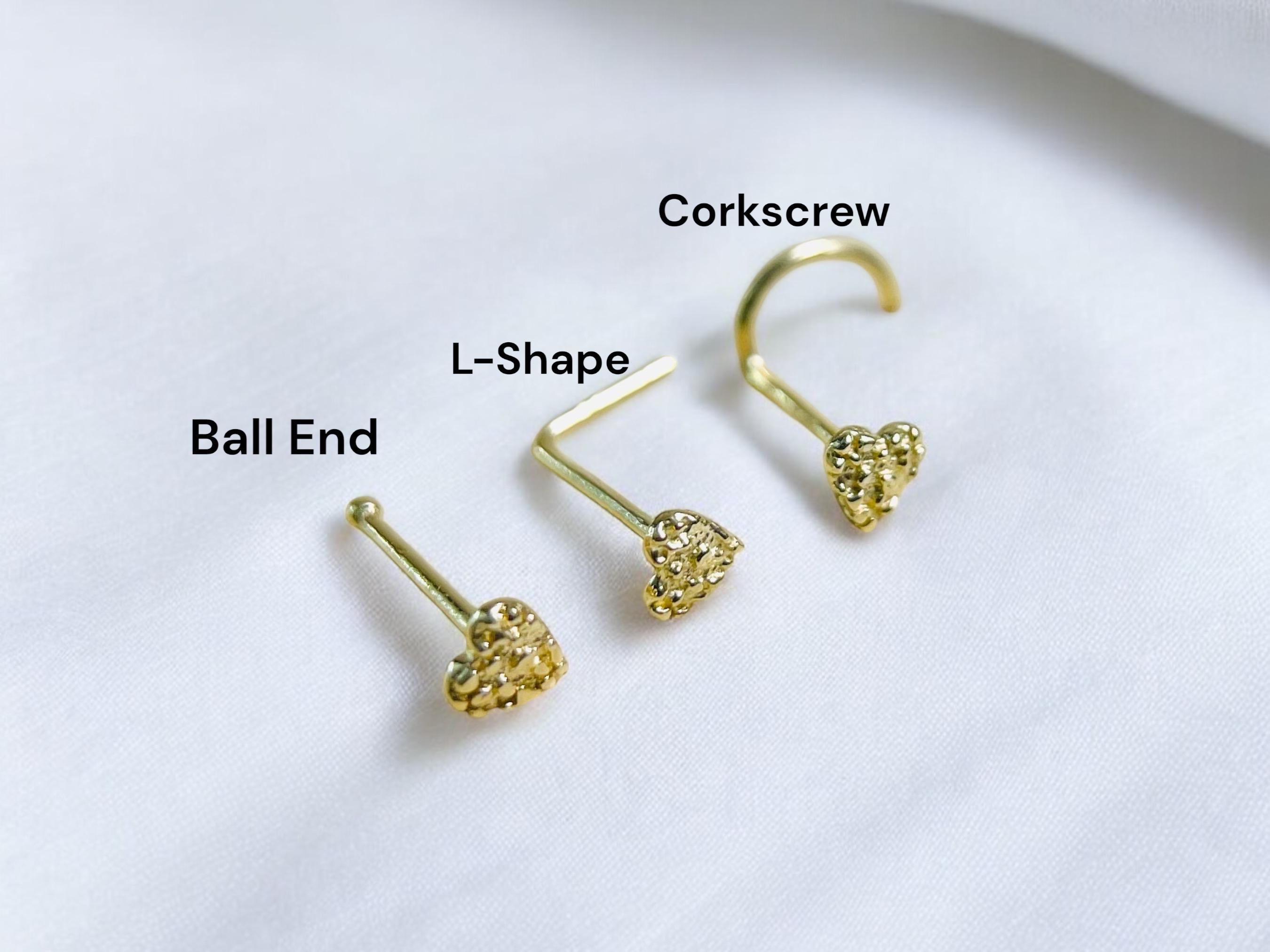 Clou de nez coeur en or 14 carats, Piercing de nez en or fait main,...