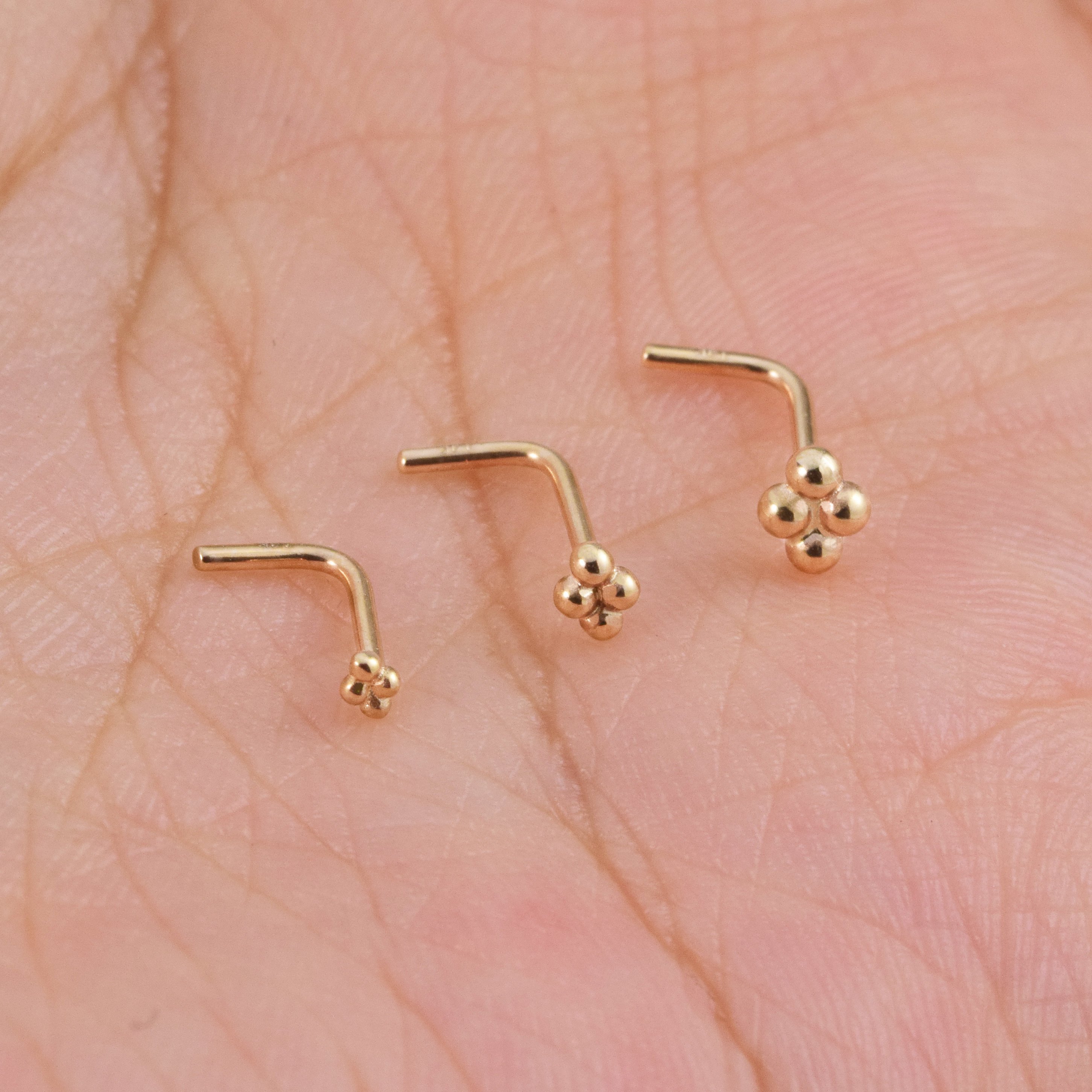 Or massif 14 carats perlé clou de nez boule cluster clou de ...