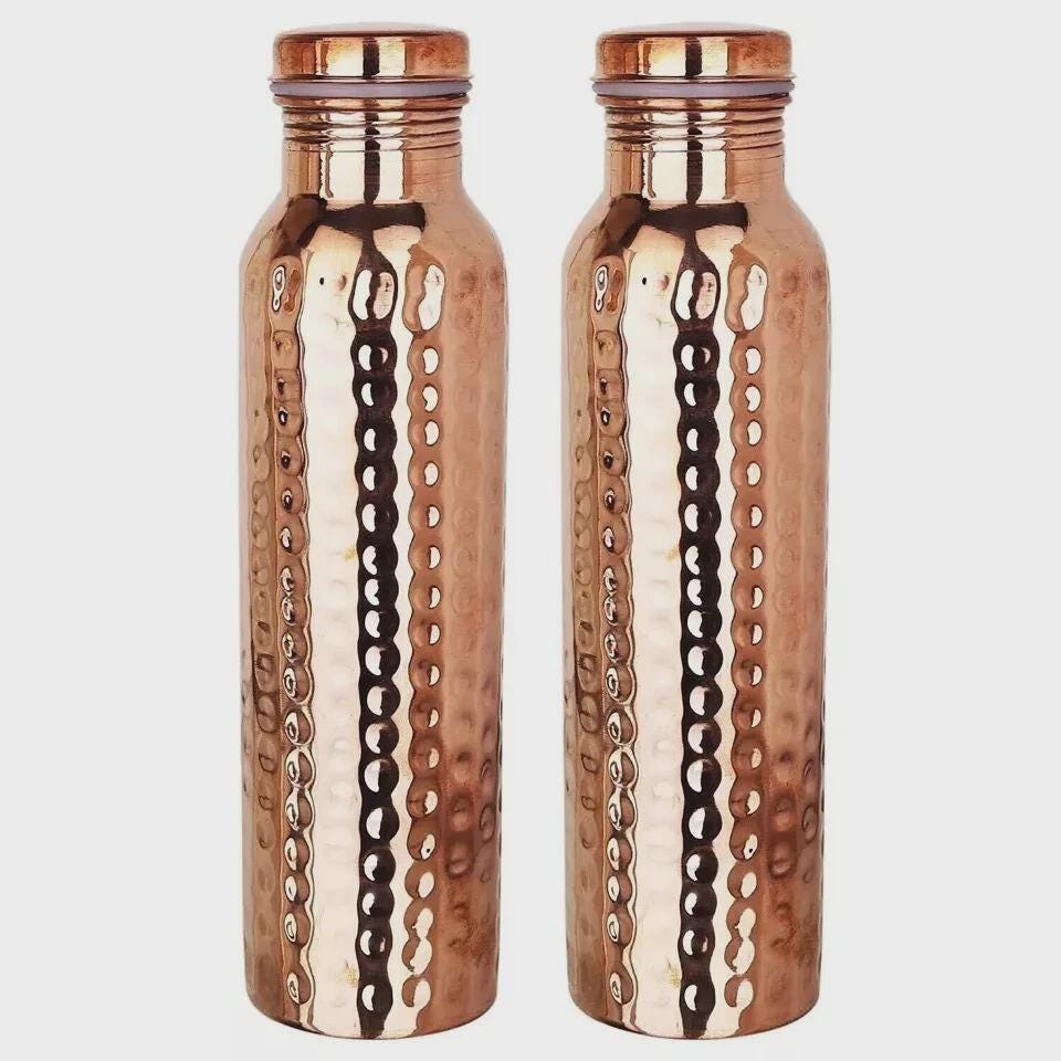 Lot de 2 bouteilles d'eau en cuivre pur pour les bienfaits de l'Ayu...