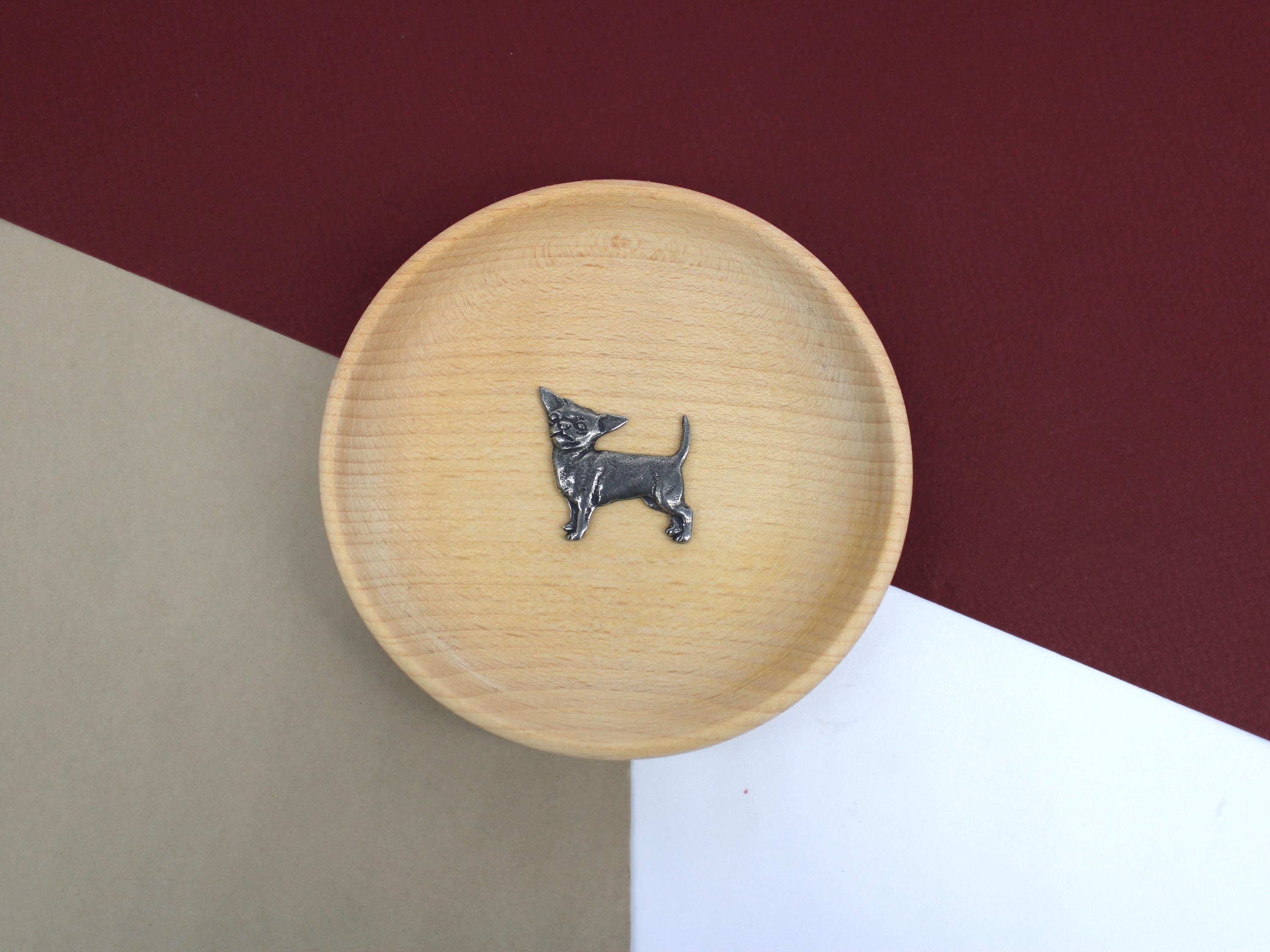 Vide-poches design Chihuahua Ce porte-objets en bois de hêtre de forme circulaire simple est i...